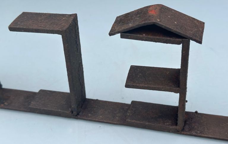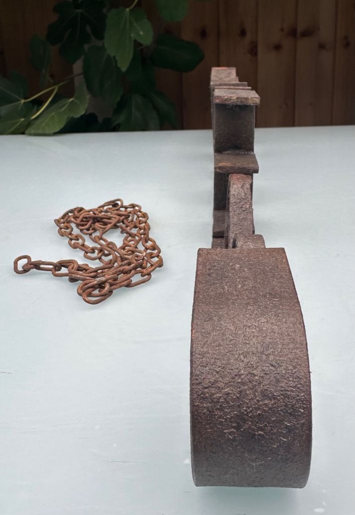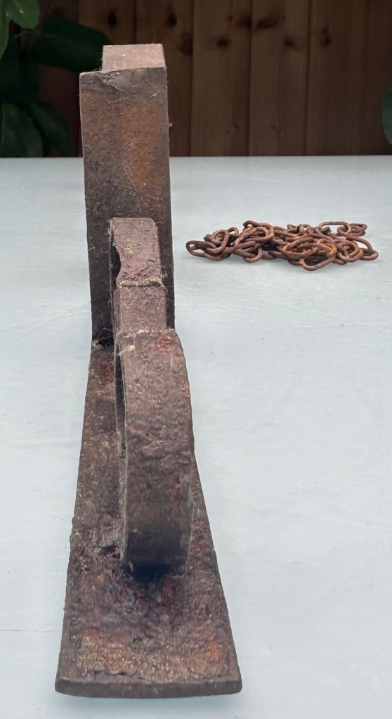 The whole is sound, stable and sturdy with rusting and a little flaking but no serious corrosion or through perforation.