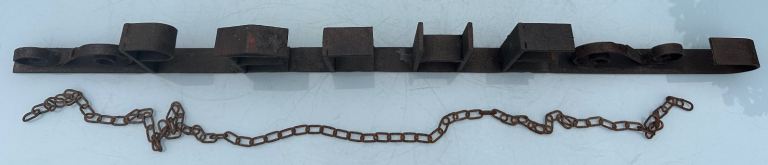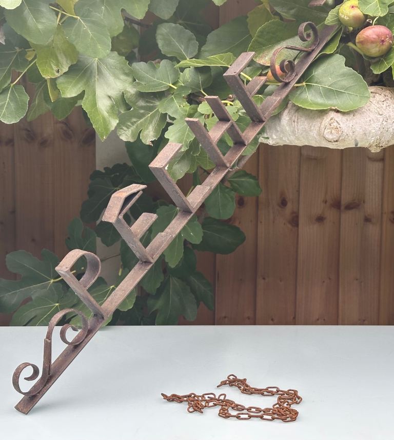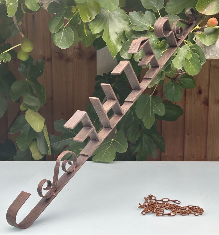 Hand wrought and welded with the word PÊCHE and a fishing hook end it is now worn and rusted but still strong and sound.