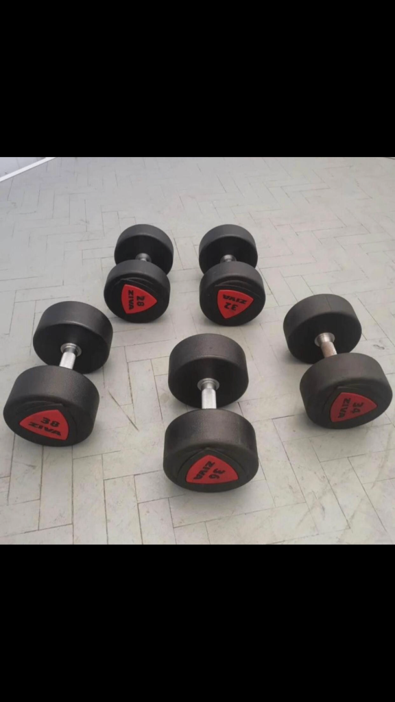 Available ziva polyurethane dumbbells and technogym weight plates for sale on bulk