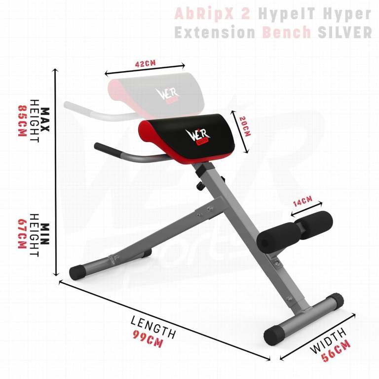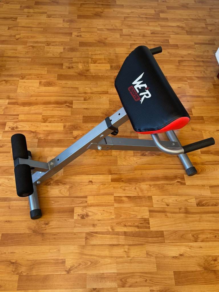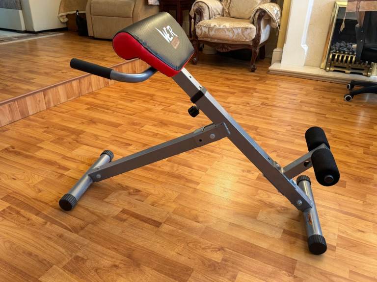 Well constructed, adjustable, foldable 45 degree hyper extension bench. Used for exercising the lower back, glutes and hamstrings. Max weight capacity: 150kg