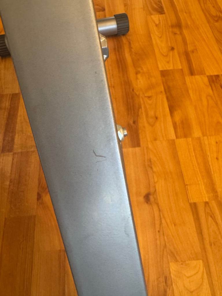 In great condition - barely used with only a few scratches (Shown in photos). The leather and foam is in perfect condition - the scratches are only on the metal frame
