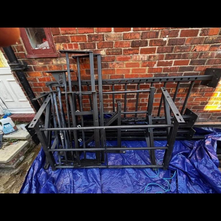 A beaver fit custom Calisthenics CrossFit rig comes with 4 dip station and squat rack attachment and pull up bars as seen in video great for a gym or home set up can be sold separately happy to answer any questions just give me a message