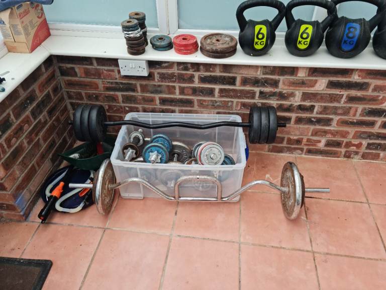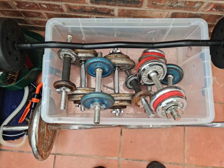 Posting for 10+ monthsDumbbells metal plates tri curl bar.