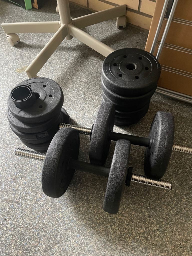 Exercise bench and dumbbell set, hardly used.