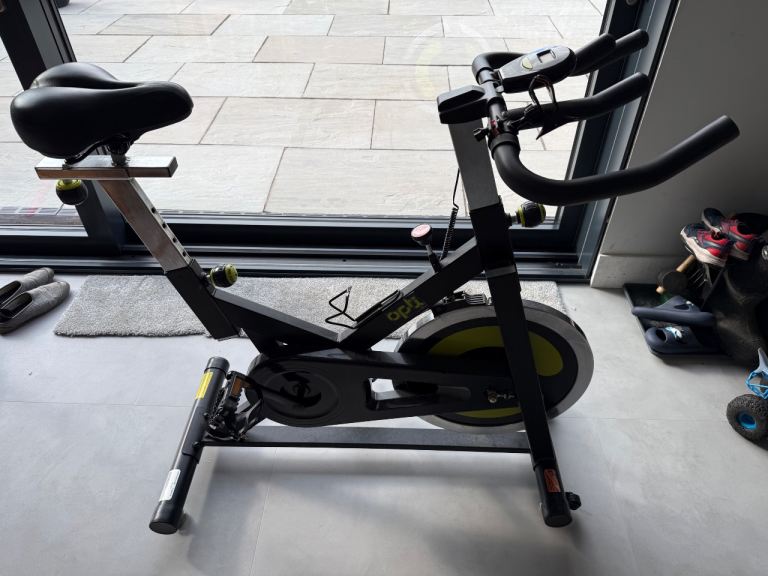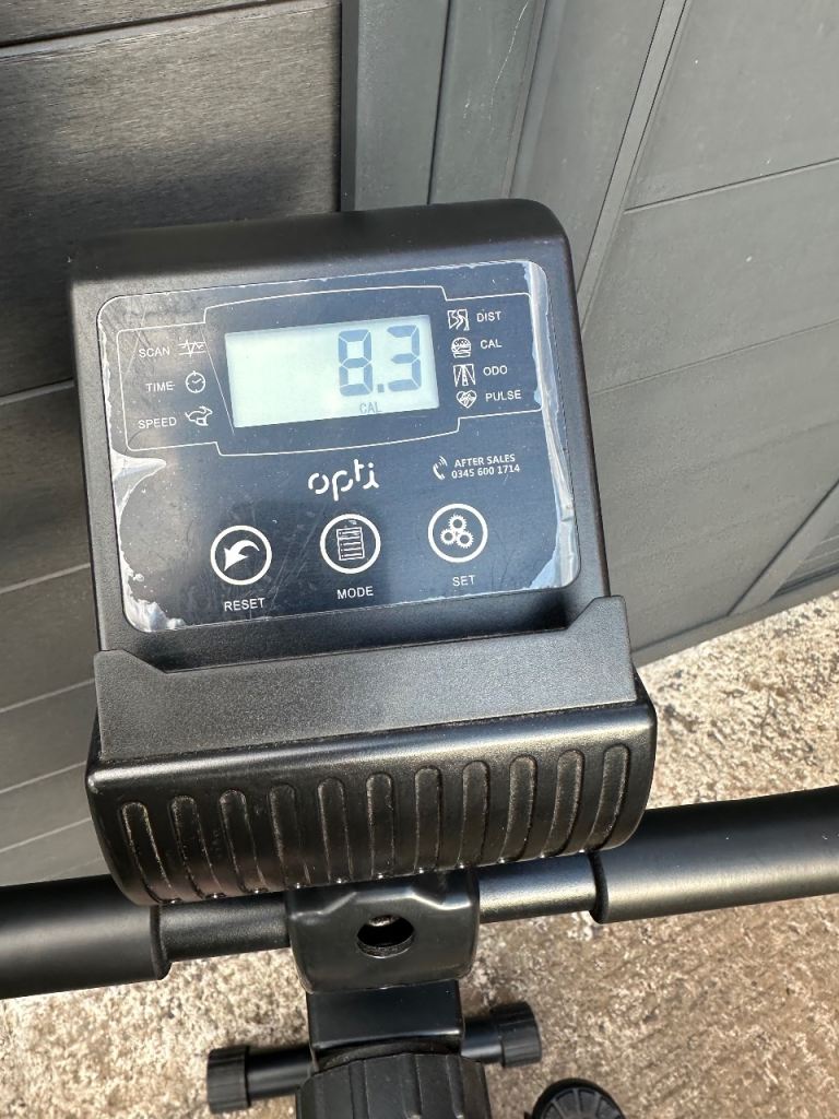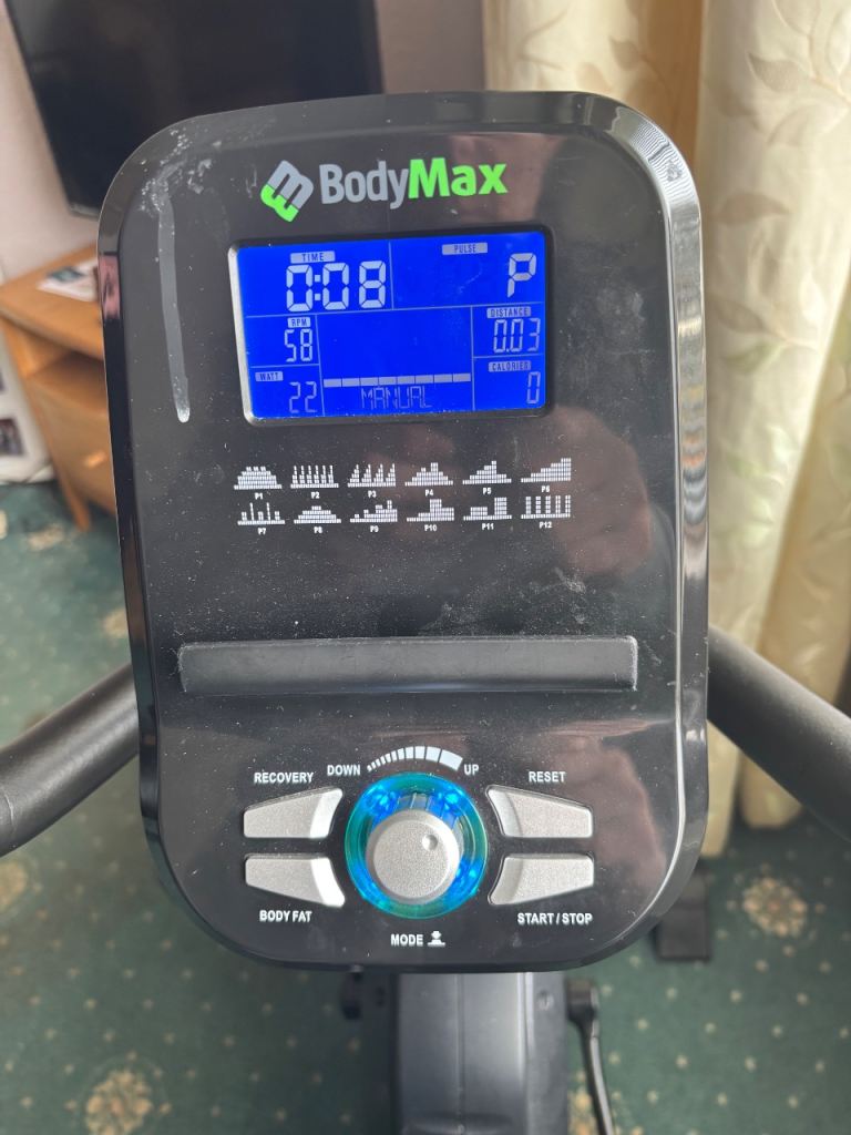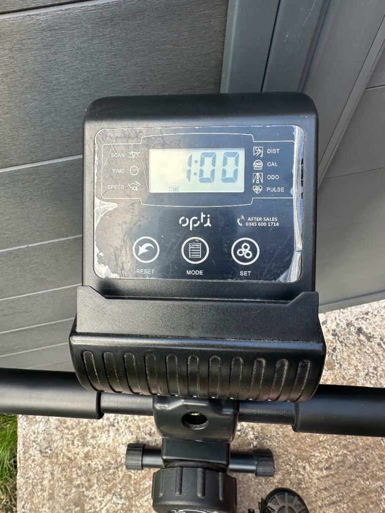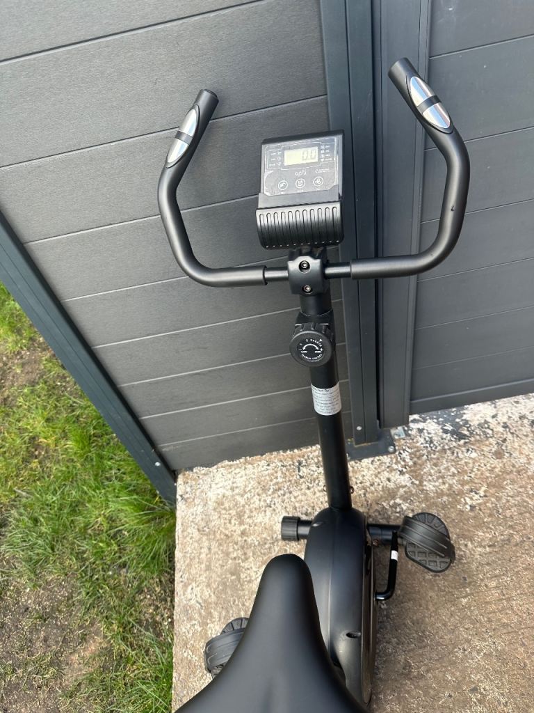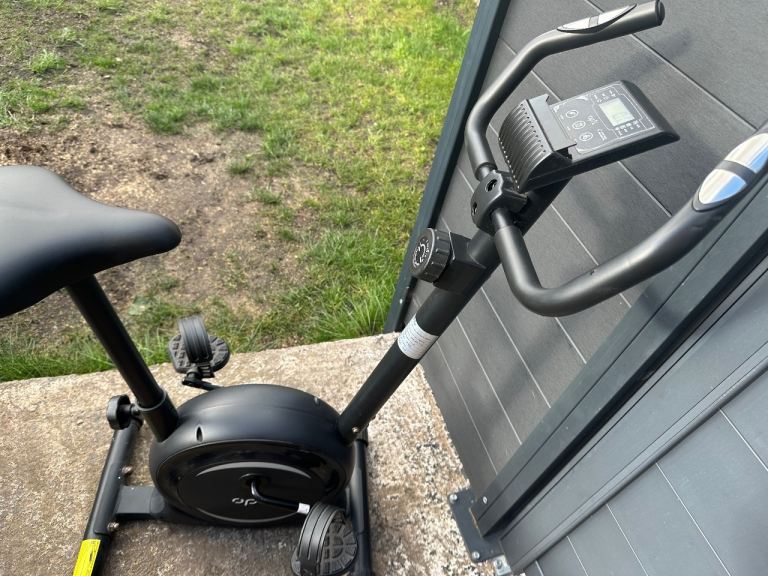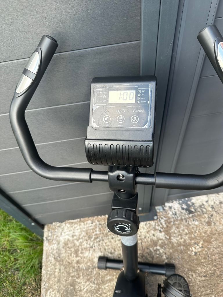 Exercise bike for sale hardly used, still has protective sticker on the control panel. Bike tells you calories burnt, speed, time, distance and measures pulse rate.