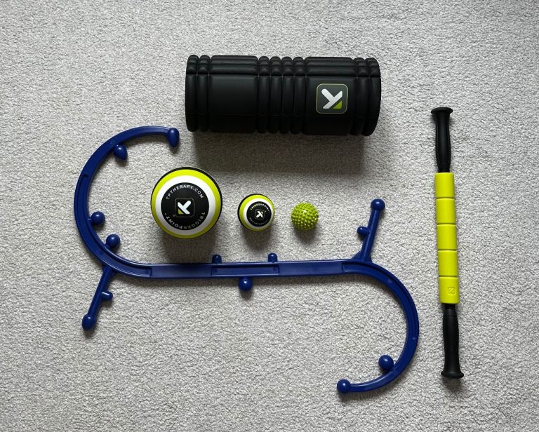 Technogym exercise bench with weights ropes etc, dumbbells, step, stretch bands, Technogym exercise matt, balance board, fitness books and foam roller for sale. May sell some items separately but looking to sell everything for £1300