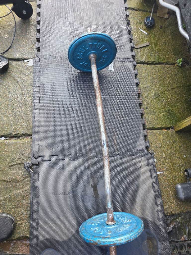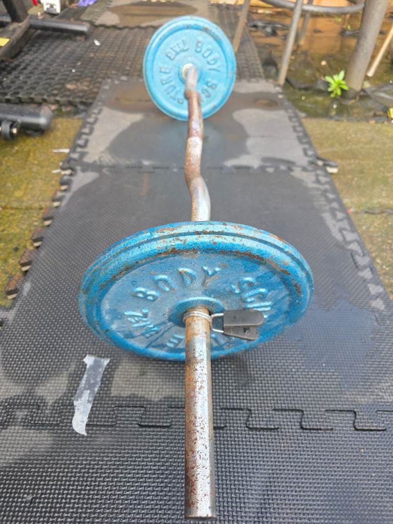 Ez bar and 15kg with weight plates gym workout training fitness