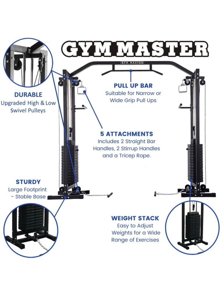Gym Master 180kg Cable Crossover Machine. Pull Up Multi Station Cage