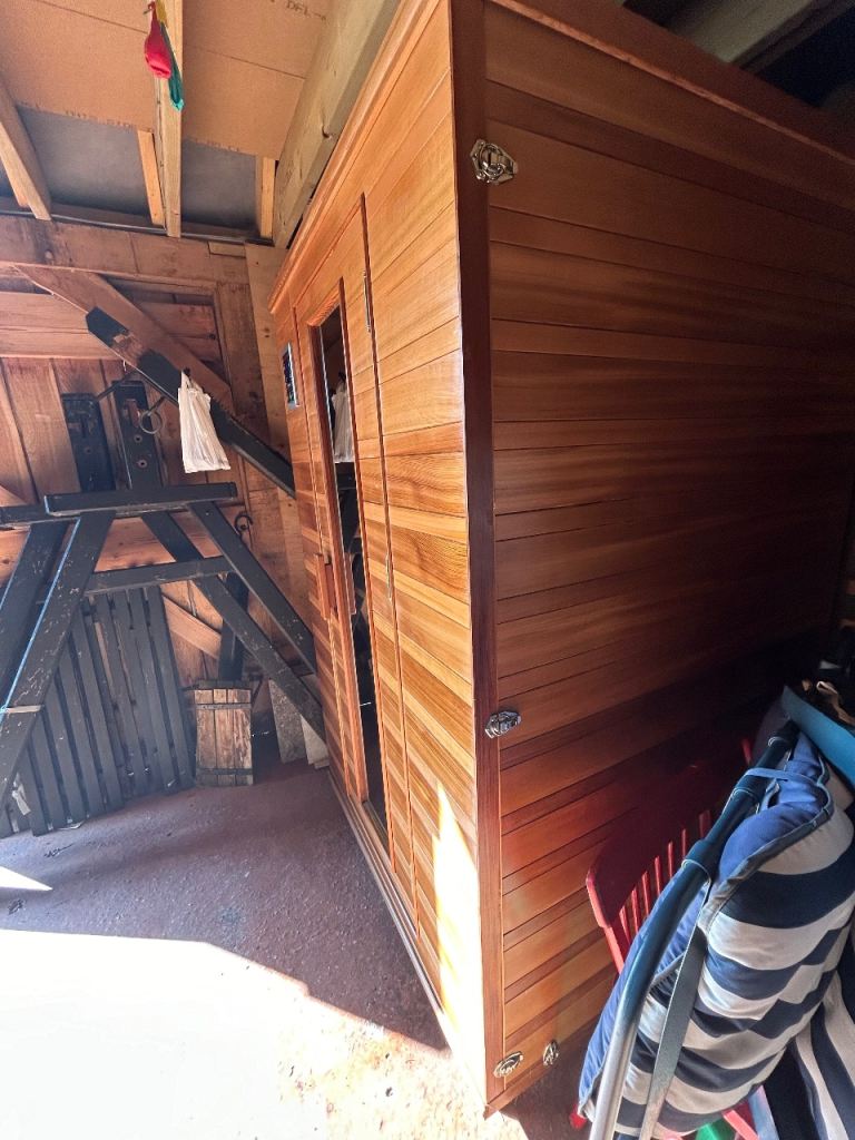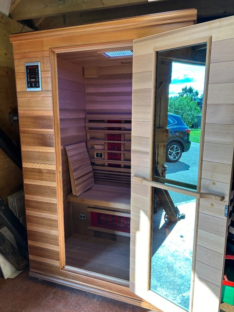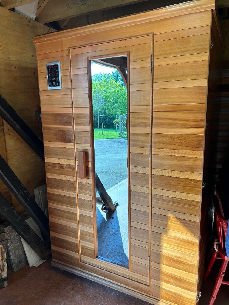 Purchased new in Jan 2022. Used regularly for 2.5 years. In storage now. Clean and in very good condition. Has Bluetooth audio and multicolour light therapy inside in addition to full spectrum infrared heat panels.