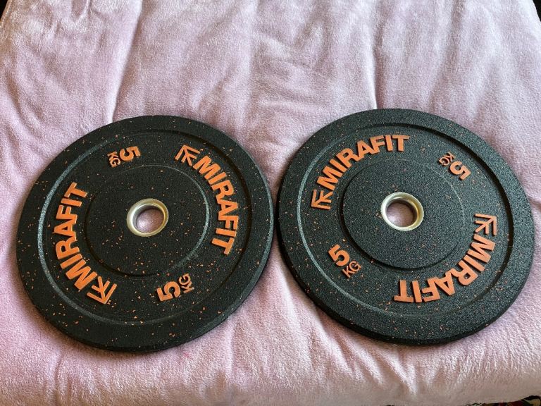 Mirafit M3 Barbell & Black Bumper Plates Set
