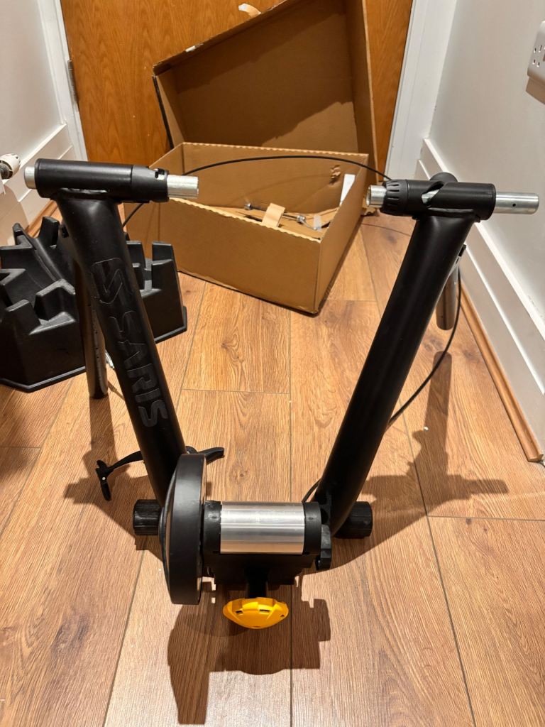 Selling my indoor bike trainer, complete with a quick release bike skewer and front wheel support block riser. It has only been used couple of times, so it’s in very good condition and works perfectly.