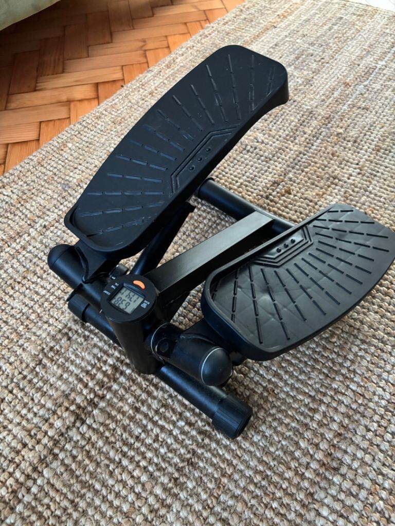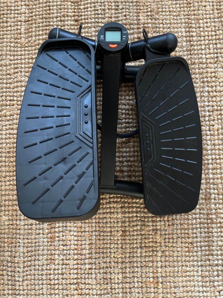 Vanect stair stepper. Hardly used as since bought an exercise bike. Size: 33.8L x 28.9W x 19.8H centimetres. Paid £48.99 new. No resistance bands: threw them away as they served no purpose.