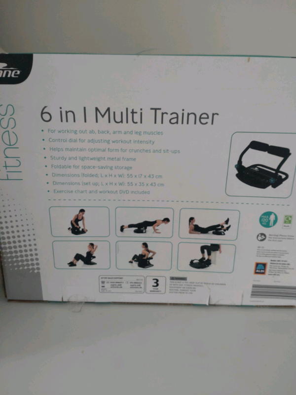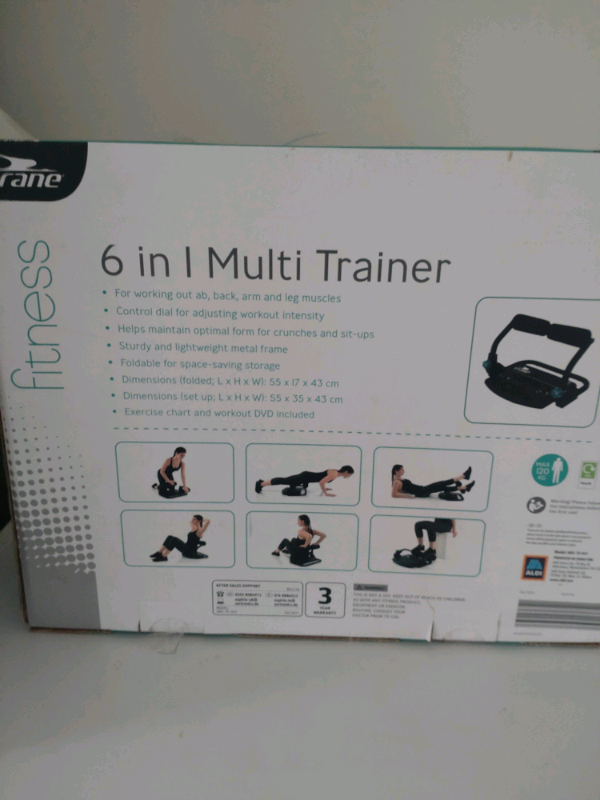 6in1 multi trainer. For work out ab,back,arm and leg muscles. Help maintain optimal form for crunches and sit-ups. Foldable for space-saving storage.