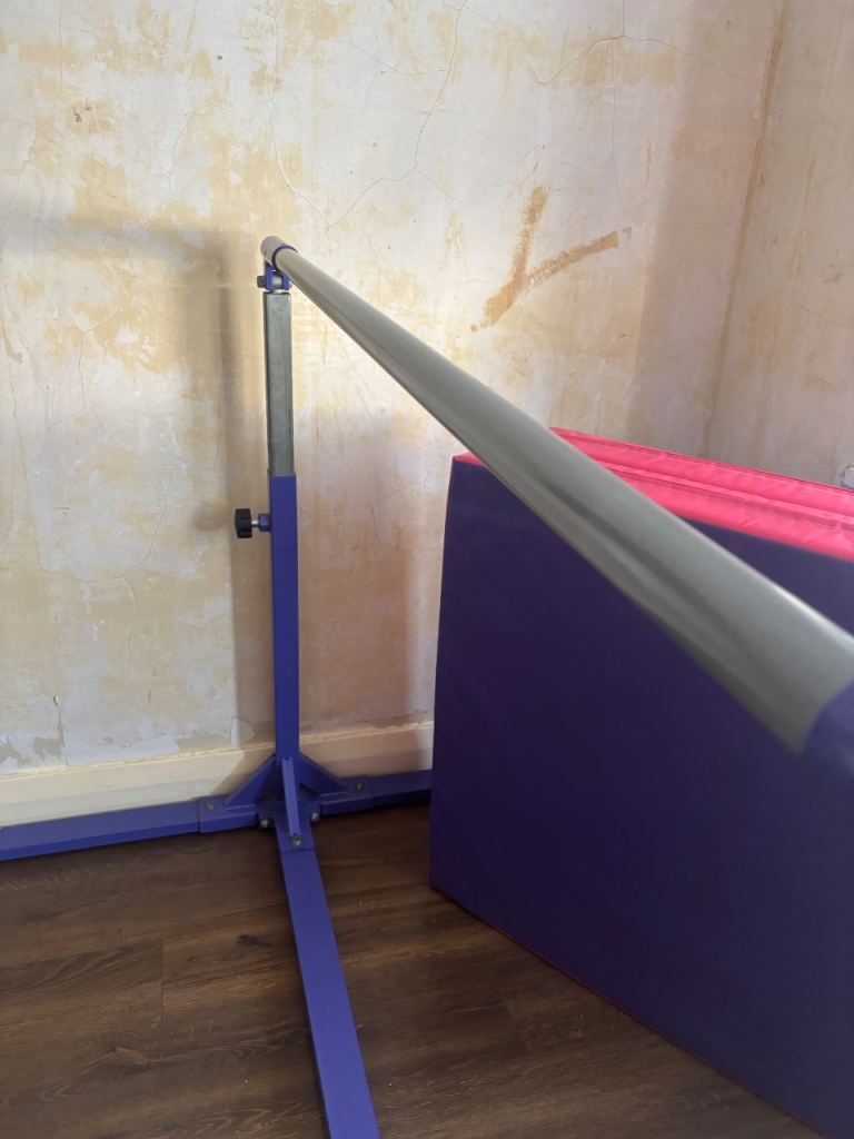 Adjustable gymnastics bar in great condition, perfect for home practice and skill development. Height to 1.5meters with adjustable bars