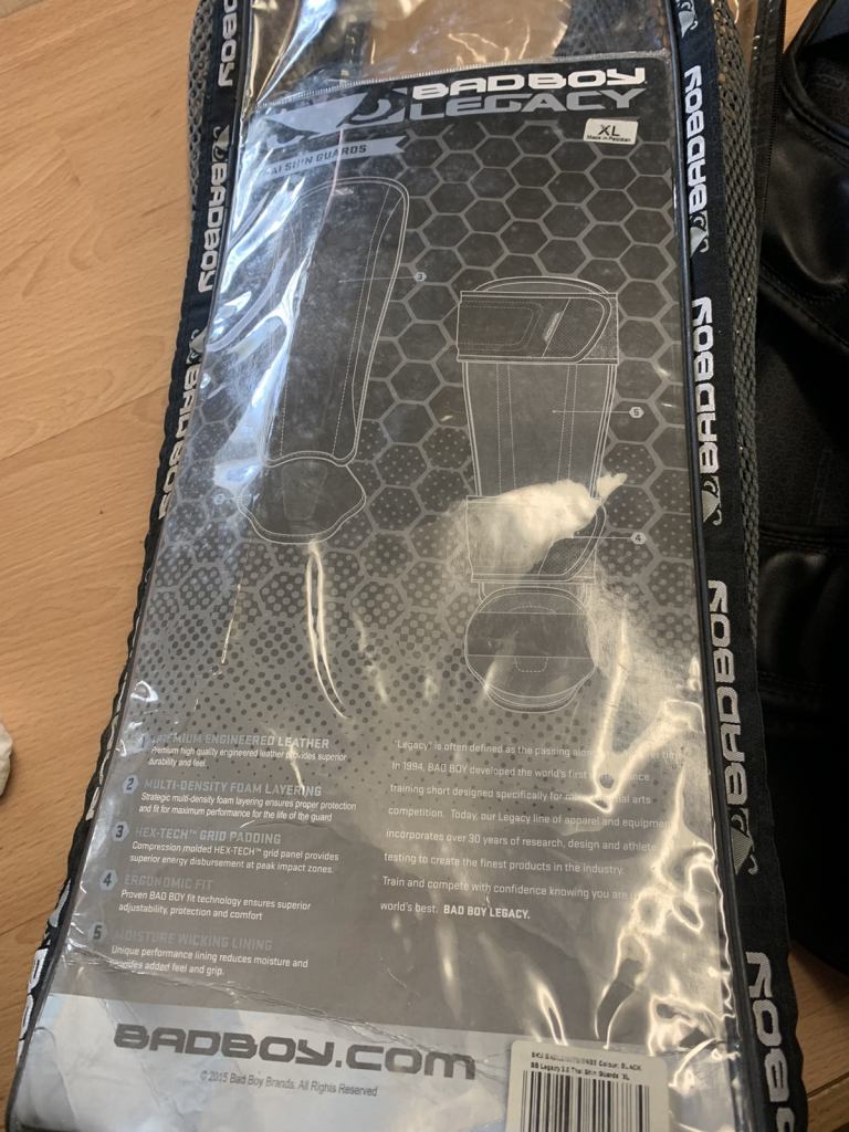 Badboy brand Thai shin pads in excellent condition, never used, still in original pack and genuine black leather, ideal for any injury on knee’s or legs,