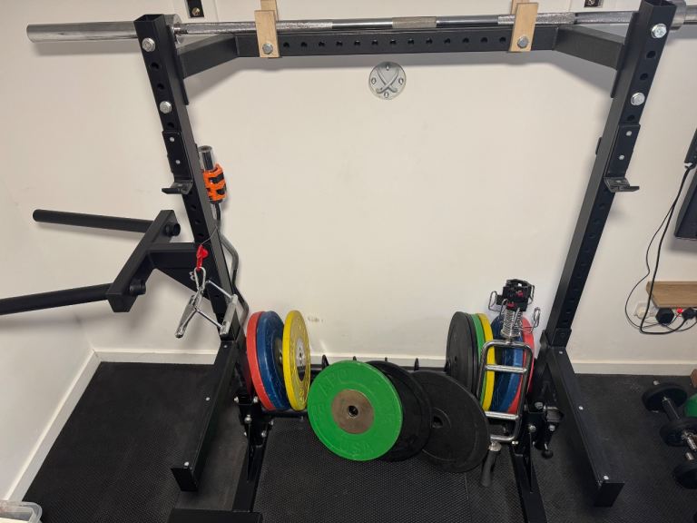 Olympic Weights 165kg, Barbells, BullDog Squat Stands braced top+btm inc Arms, Dip, Land & stand