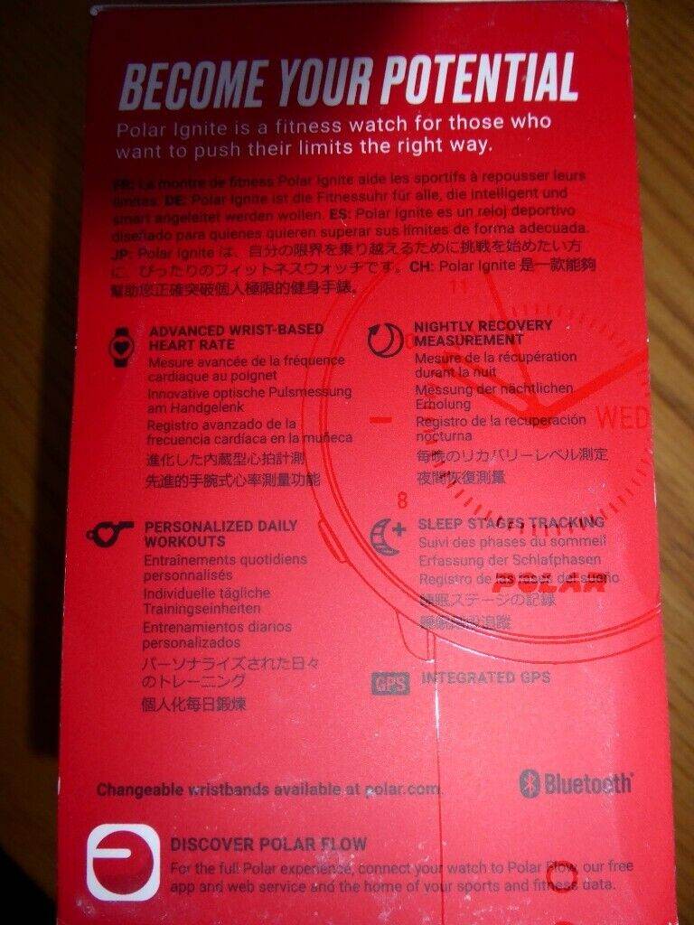 POLAR IGNITE FITNESS WATCH GPS with box charging cable and start guide