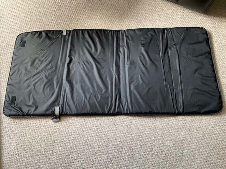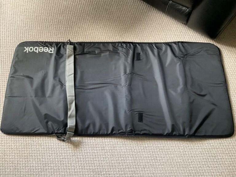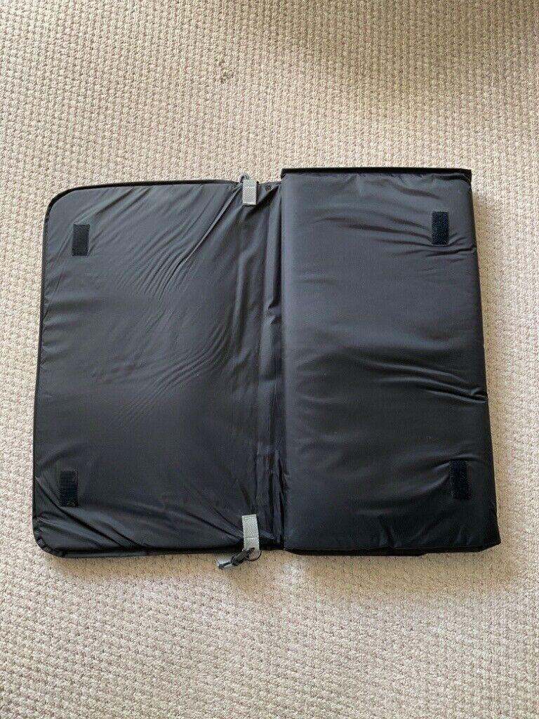 Folding, padded exercise mat with detachable carry strap, 128 cm x 58cm. Perfect condition.