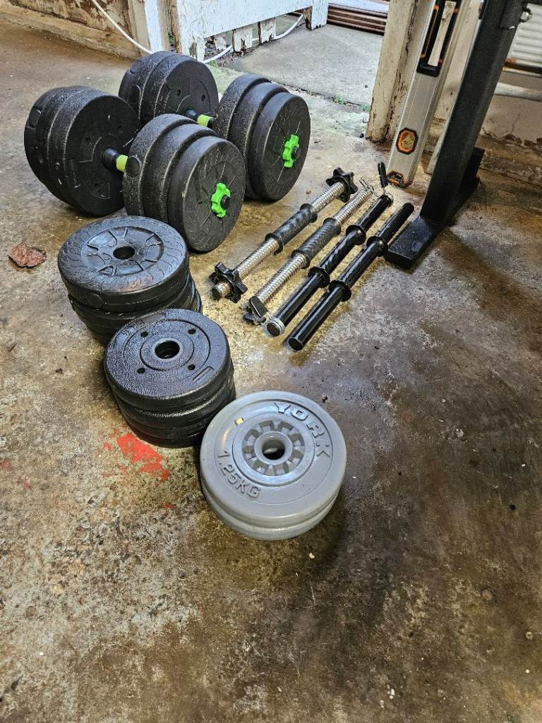 I am selling my gym equipment due to moving house. This includes weight plates totaling 120.5kgs;