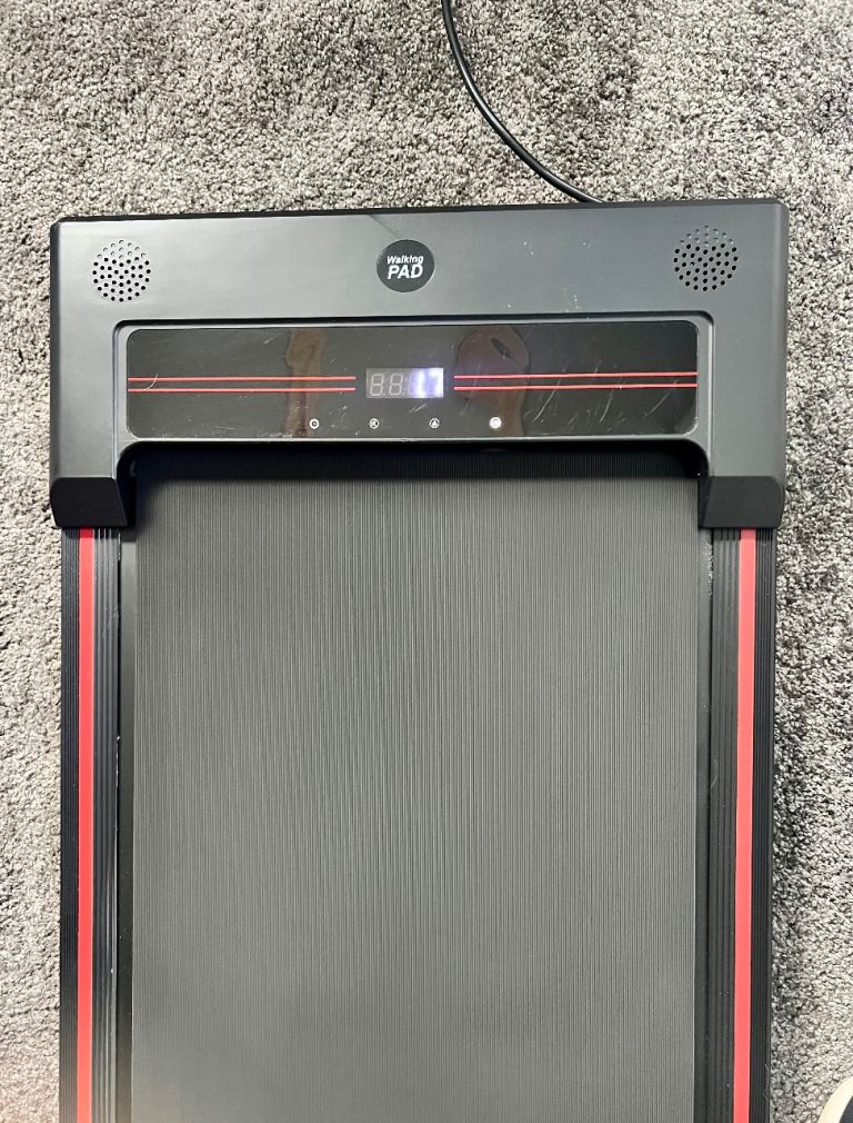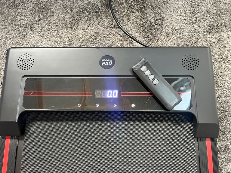 Walking pad for sale as no longer needed. Comes with remote control. Wheels at one end for ease of use and it can go up to 6kph so can also be used for light jogging.