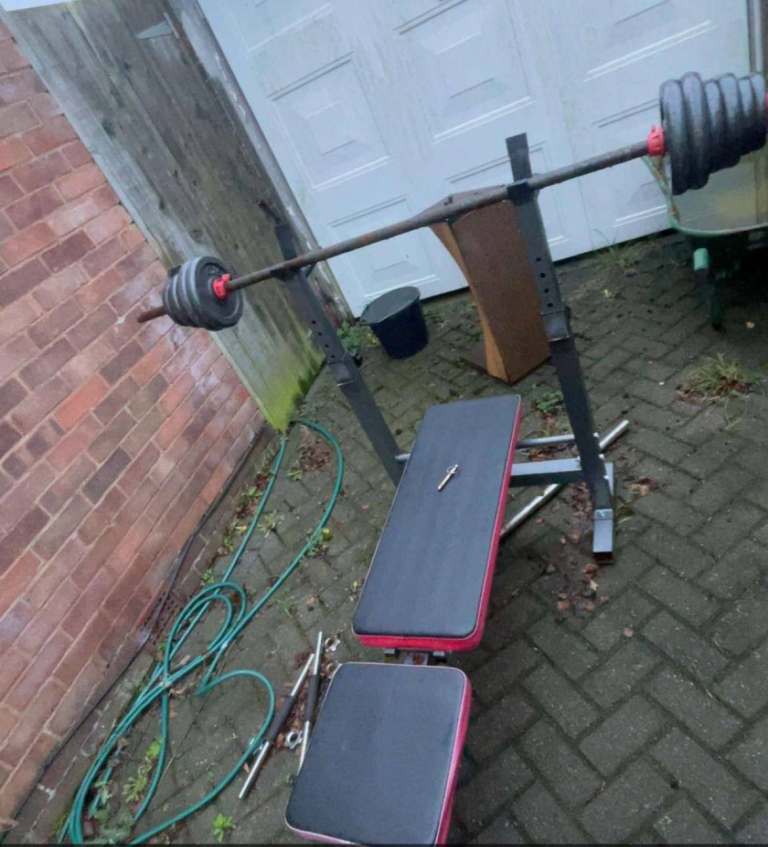 40KG overall varied different YORK plates + barbell + 2X Dumbells and incline adjustable bench press