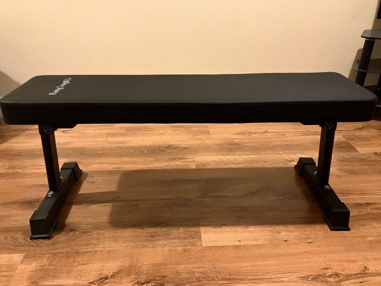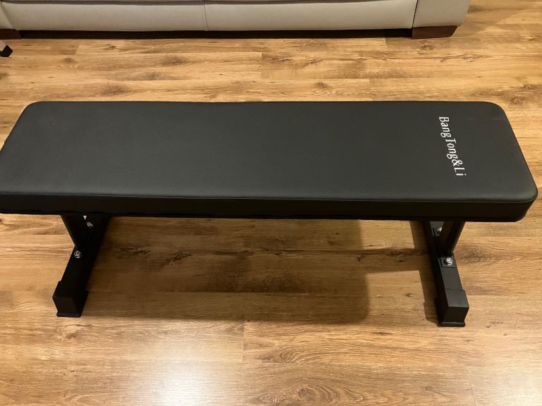 Flat heavy duty weight bench. Approximate size 45x16x18inch. Steel tube frame that folds up for easy storage. Comfortable cushion 2.5 inch with wear resistant coating. Weight capacity 300kg