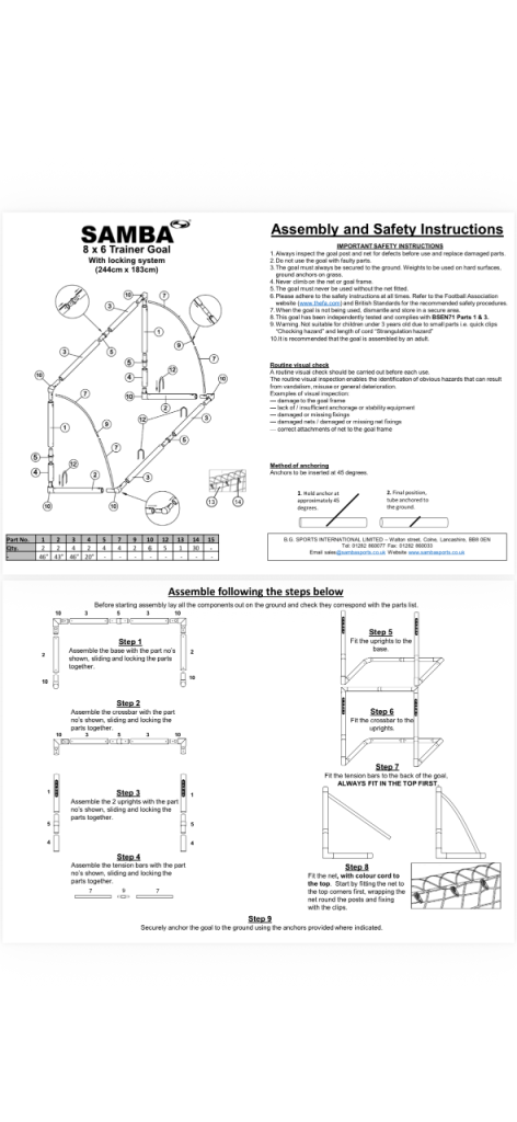 Features the unique Samba locking system. Goals come with storage bags.