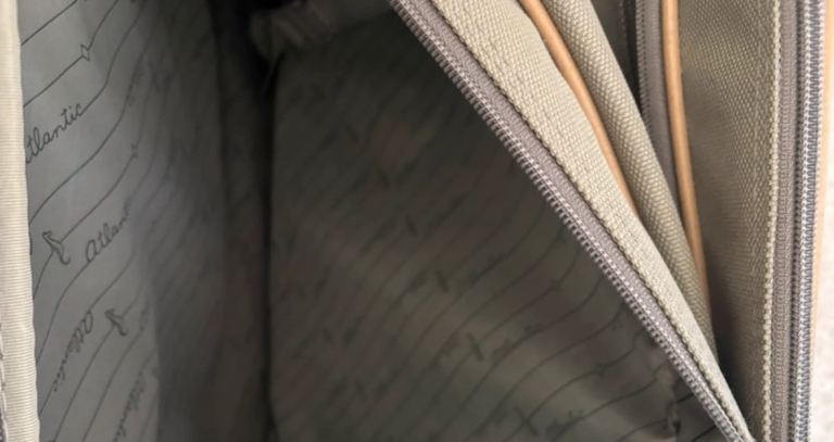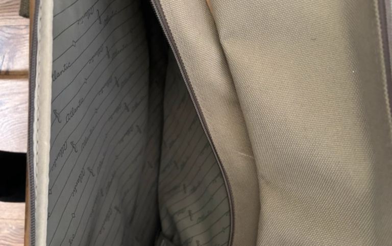 Durable khaki canvas with tan leather details - great for work, travel, or everyday use.