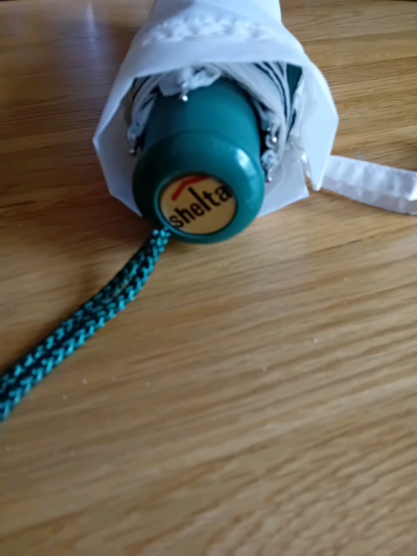 Bowling umbrella white on outside green on inside. Fold up. By Shelta.good condition collection only kingskerswell Newton Abbot
