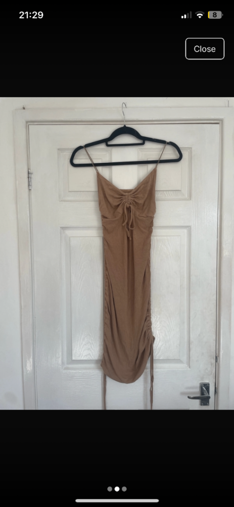 Brown shein dress with adjustable strings on the side and chest area
