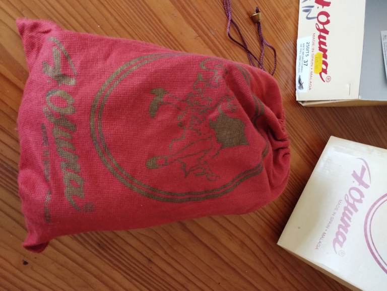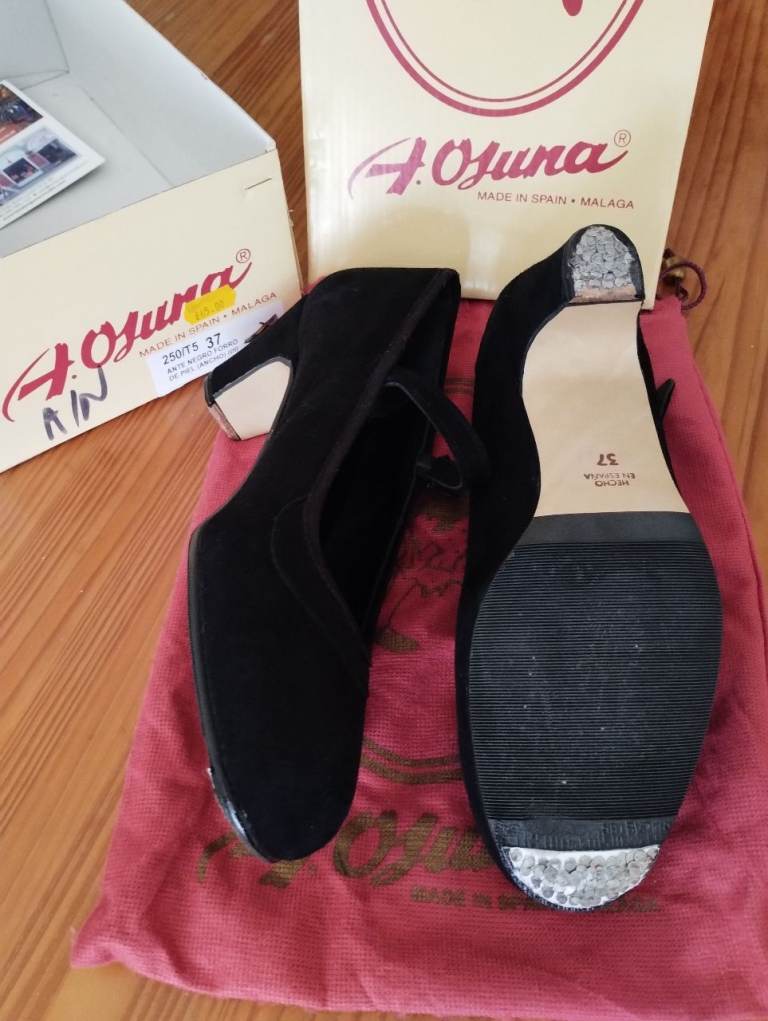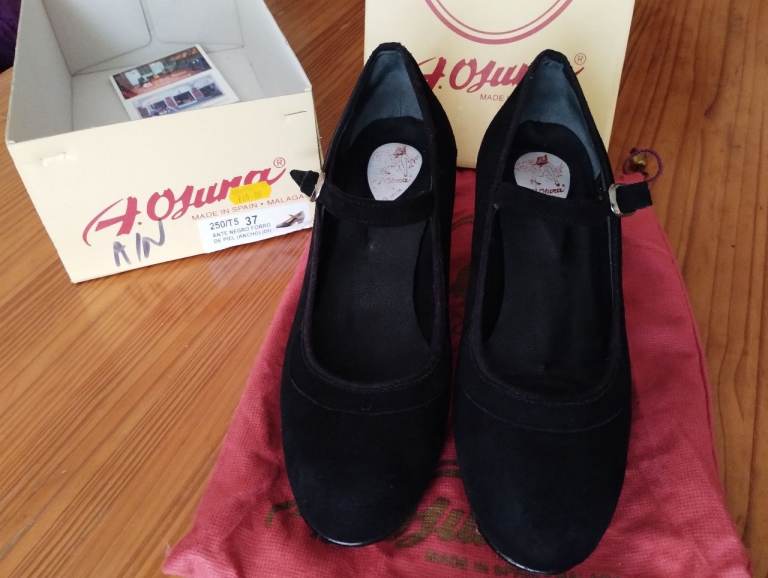 Suede flamenco shoes size 4.5-5. In original box. Comes with handy protective bag. Hardly worn, only for a few lessons. As good as new. Comfy. Can be worn with insoles. Excellent for beginners and improvers.