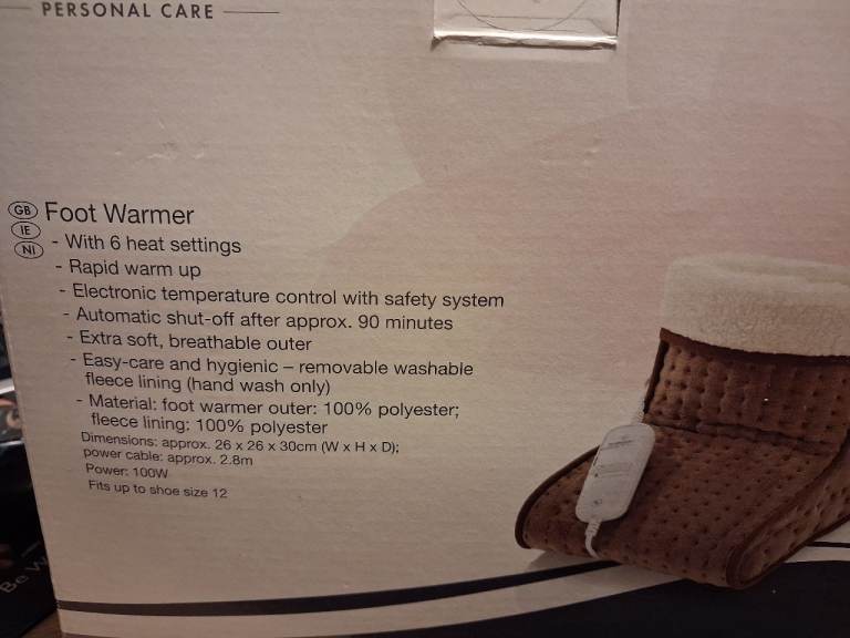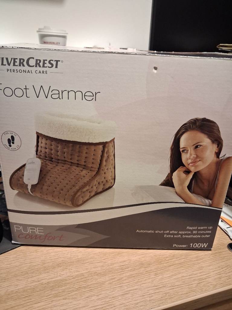 Foot Warmer by Silver Crest, with 6 heat settings, rapid warm up, easy care and hygienic - removable washable liner, only uses 100 watt power. Ideal for cold winters at minimal costs. When your feet are warm you are all warm.