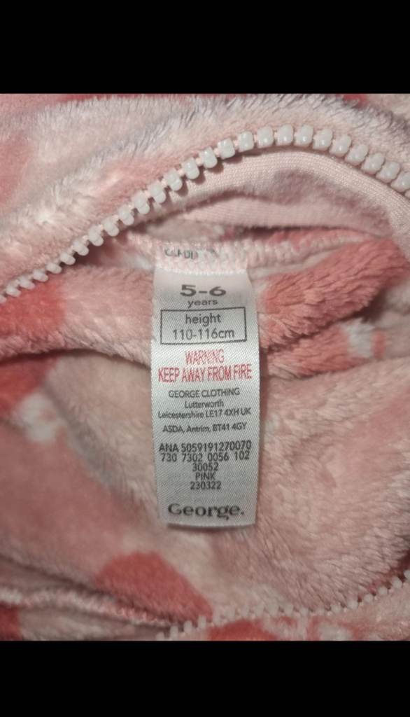 George at ASDA Pudsey Bear Pink Fleece Onesie Age 5–6 Years