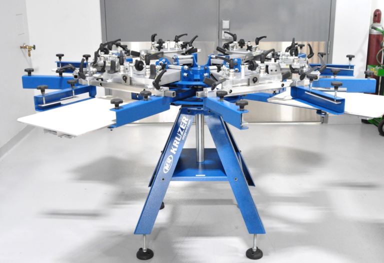 DESCRIPTION Kruzer Manual Screen Printing Press The Kruzer Manual Screen Printing Press is M&R’s most popular manual screen printing press, and it is available at an unbelievably affordable price. Built with M&R’s rugged construction and innovative design, Kruzer includes numerous proven design features, including tapered-roller-bearing-supported upper and lower carousels, a precise micro-registration system, machined centre shaft, and three-point pallet levelling system. M&R’s Kruzer manual press is offered in a 6-colour/4-station model or an 8 colour 4 station press and comes with side clamp screen holder and solid aluminium, low-profile, rubber-coated pallets as standard.