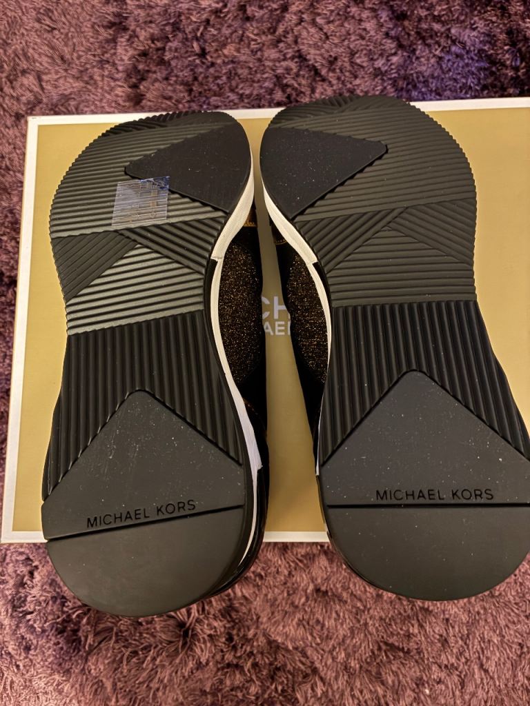 Brand new still in the box never been worn Michael Kors trainers. Women size 6. Black and gold in colour with white sole.
