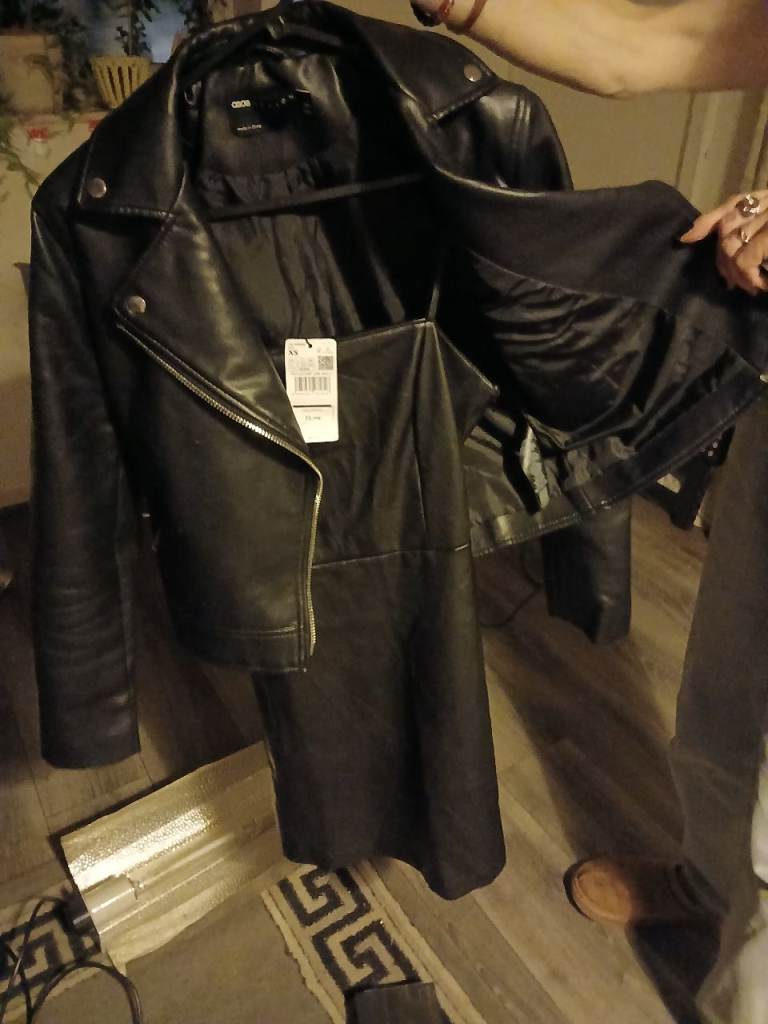 Black biker jacket, size 8, nearly new. Asos design, can be worn with jeans for a casual look or with a dress, trousers or skirt for a smarter outfit.
