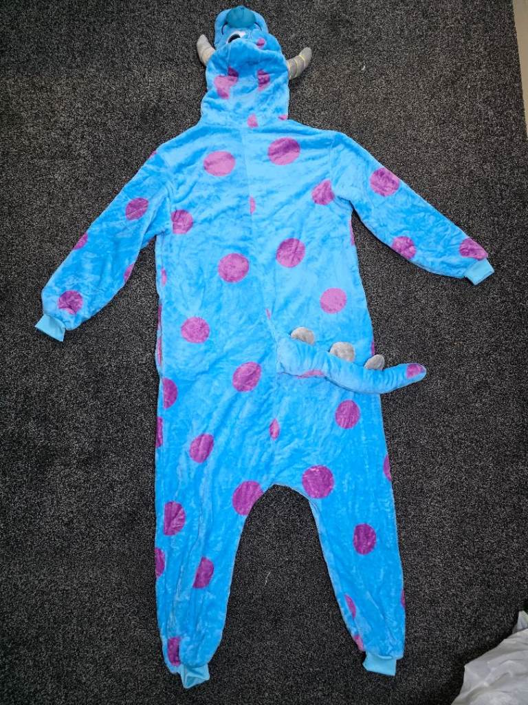Designed to look like the lovable Sulley from Monsters Inc, this hooded onesie will make you feel fluffy and cozy in no time. The faux fur suit imitates Sulley's blue and purple patterned fur, and the hood includes his smiling face and curved horns. The spiked tail on the back finishes off the outfit.