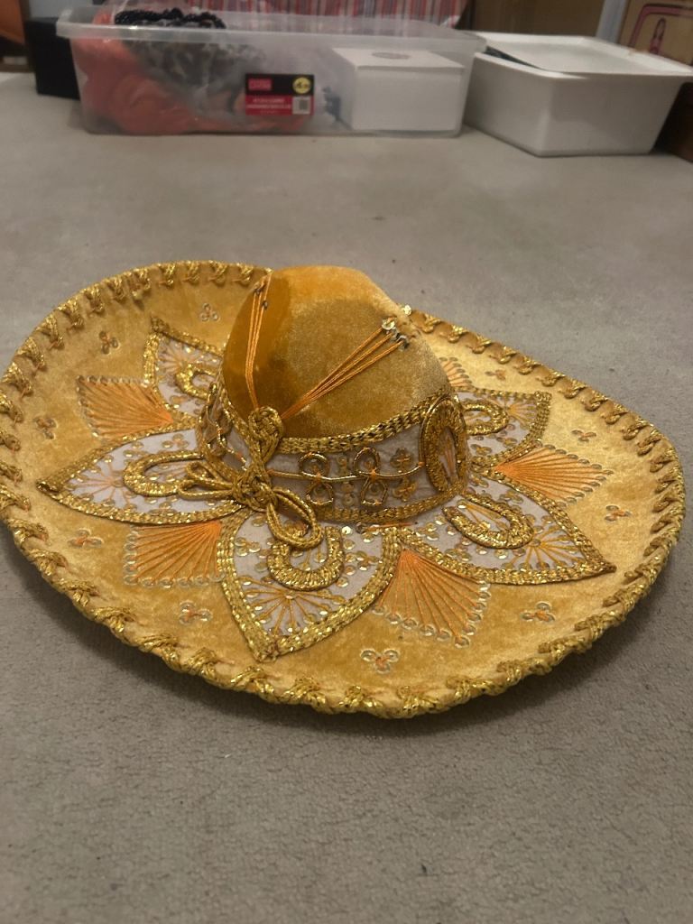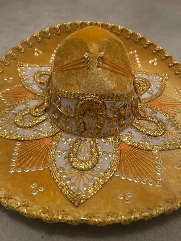 Authentic Mexican Charro mariachi hat in yellow and gold