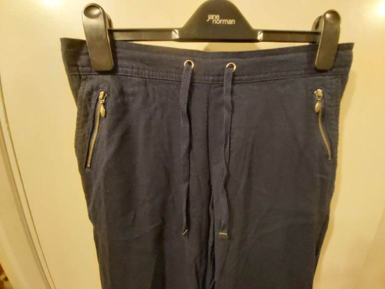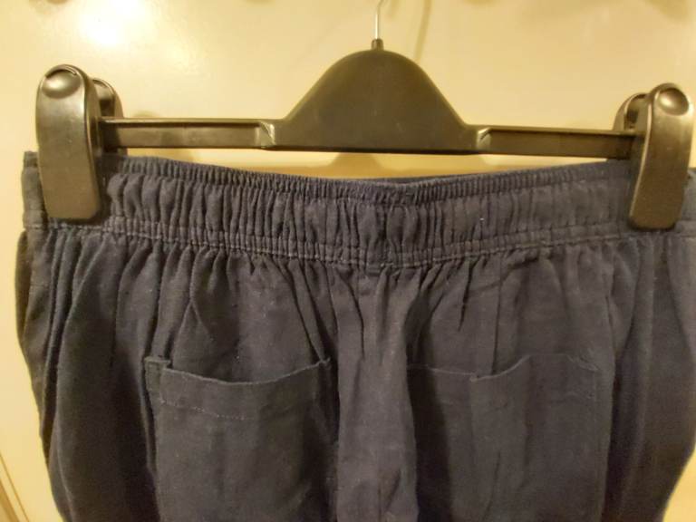 • TU Navy Linen Trousers with Elasticated Waist at the Back & Ties at the Front