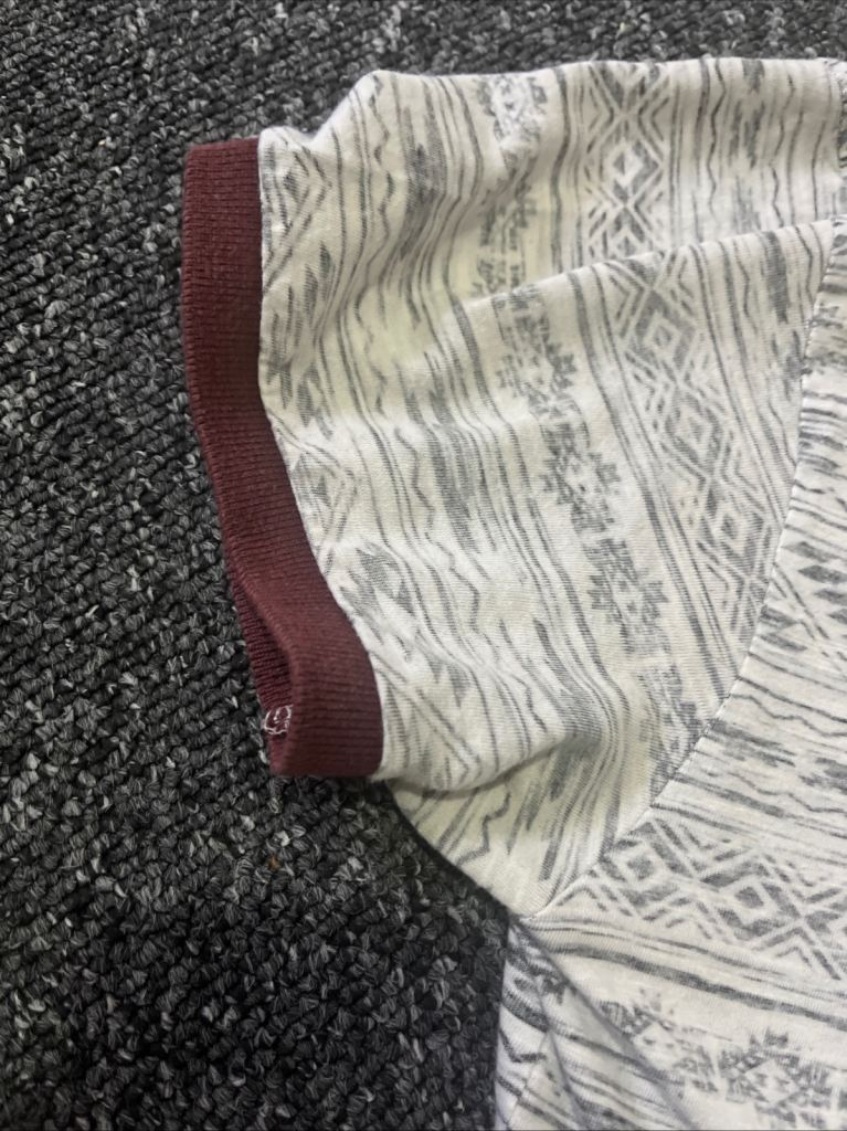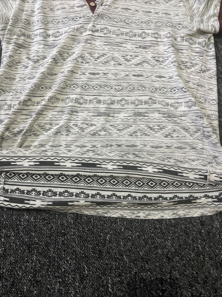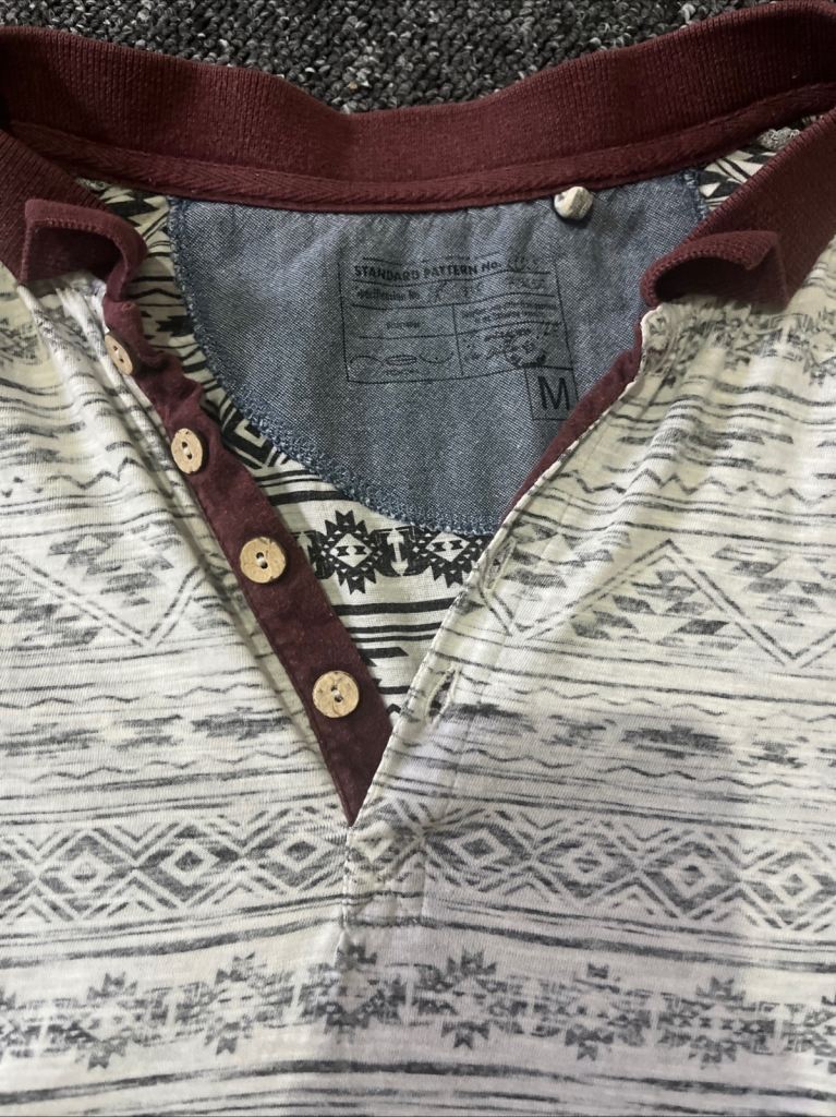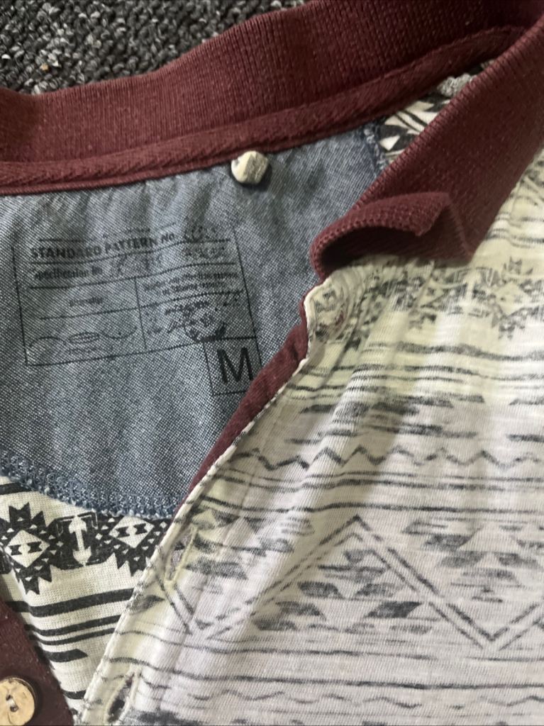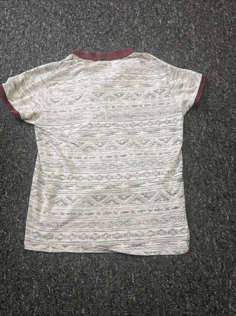 Posting for 8+ monthsWhite and Black T-shirt with Red Collar Size Medium Buttons Up Short Sleeves
