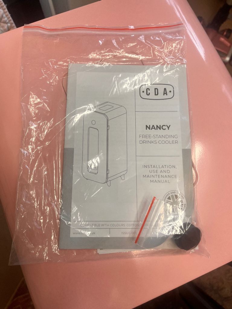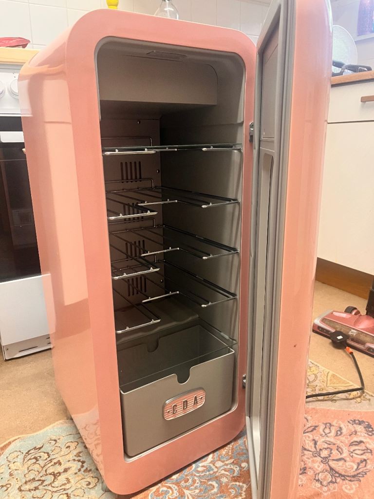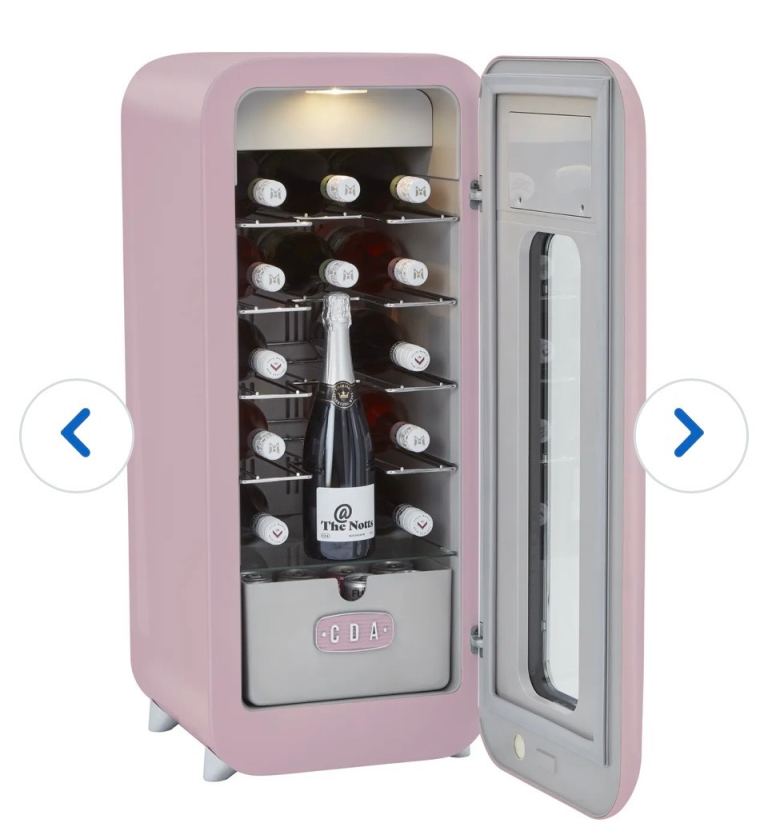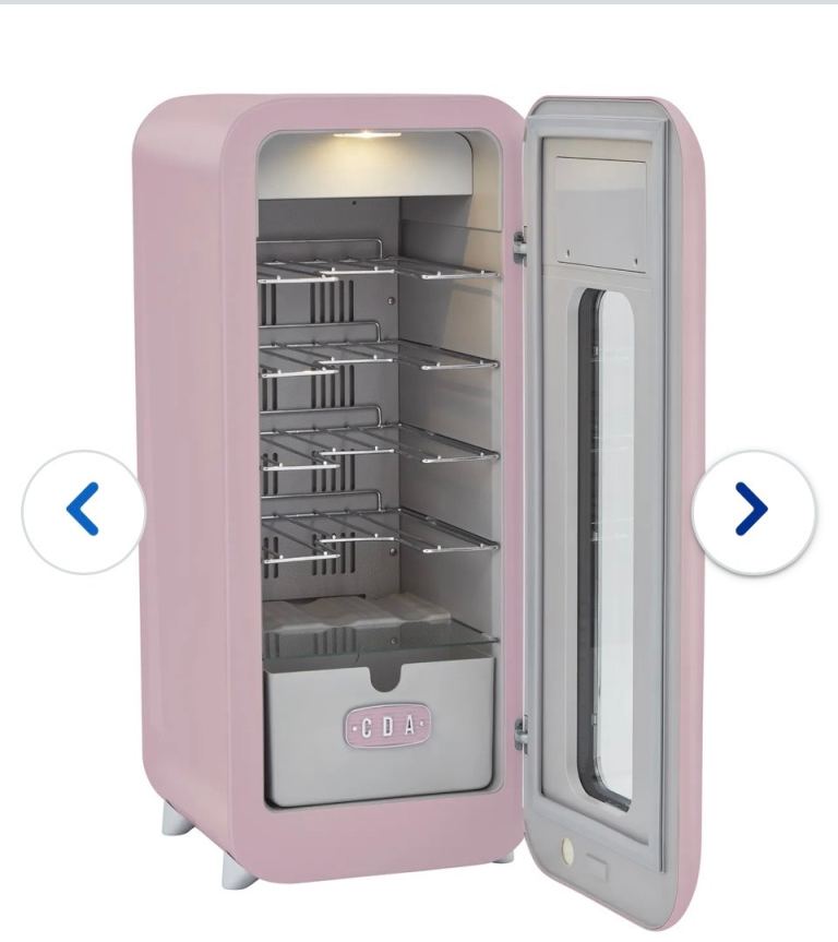 Brand new pink wine cooler. The brand is CDA Tea Rose wine cooler. Purchased from AO December 2025. Height 86cm Width 36cm Diameter 40.5cm. Holds 15 bottles and space drawer for cans. LED display. Wireless phone charger. Only removed from packaging but never used, works perfectly. Collect Belford NE70