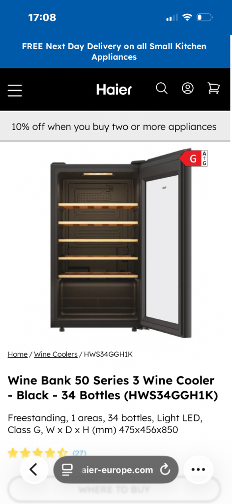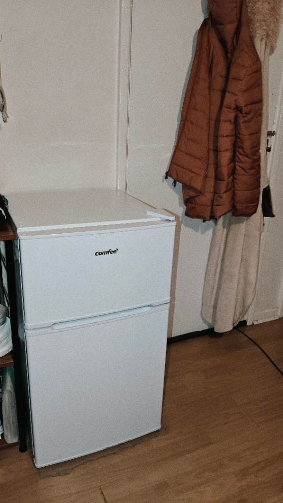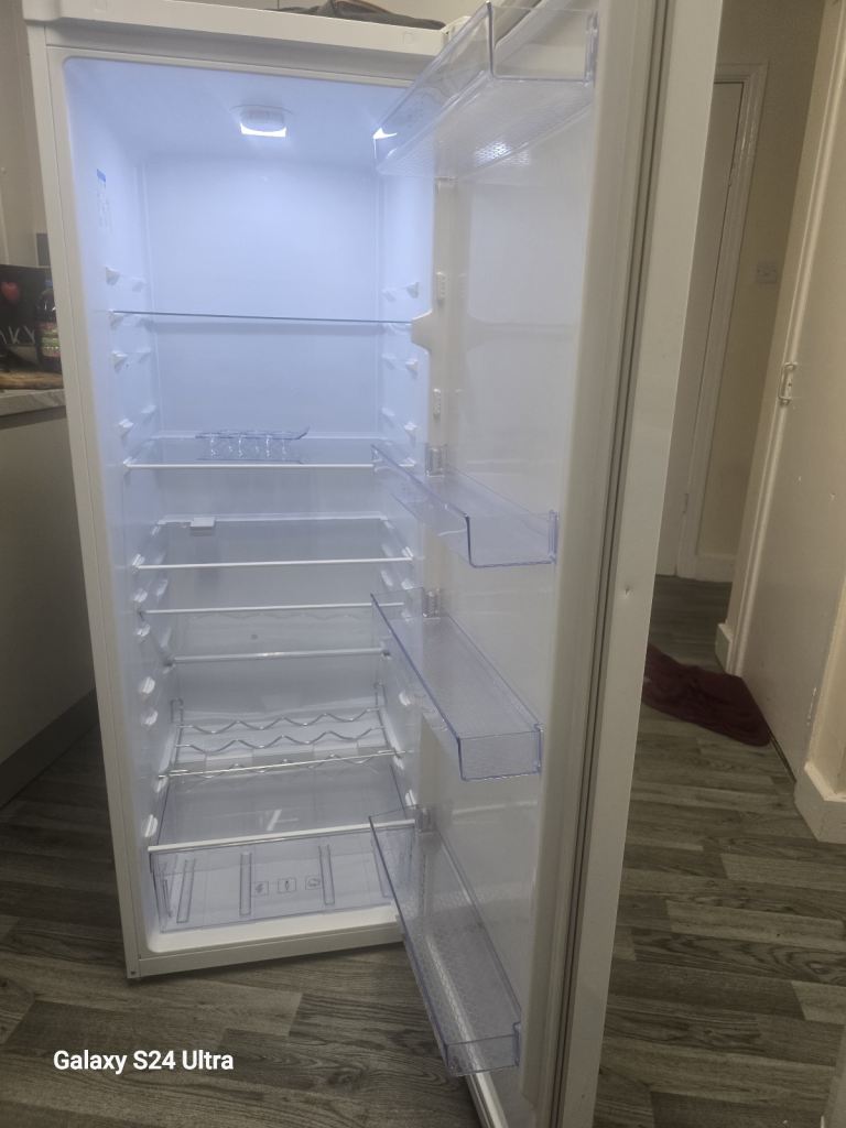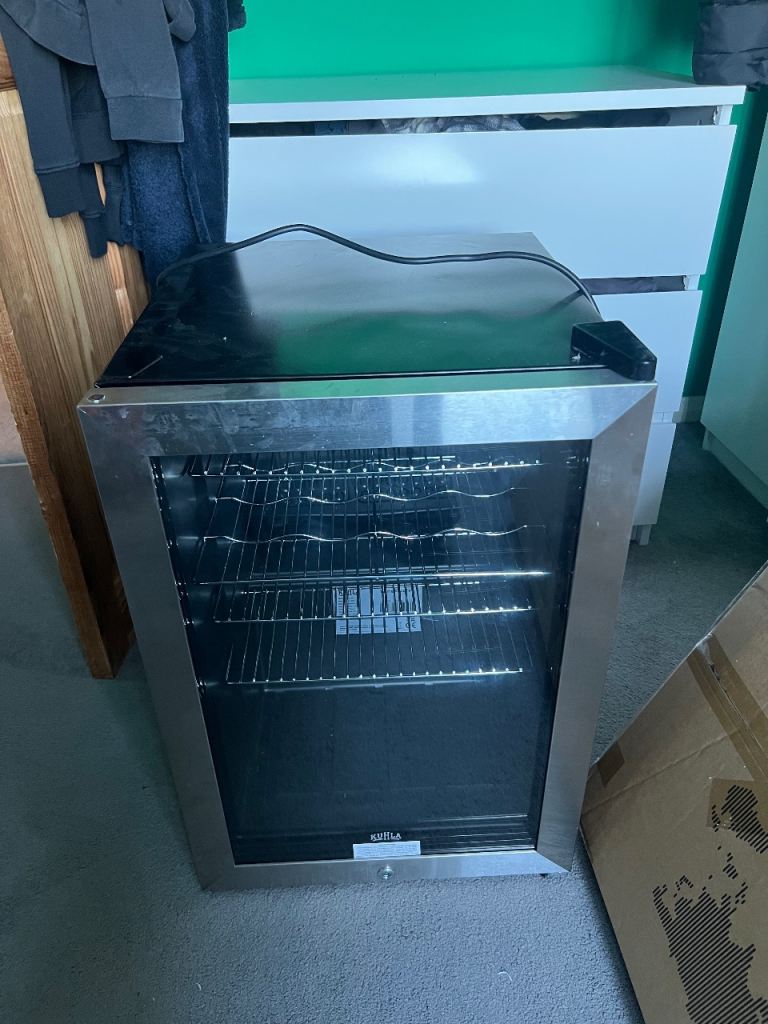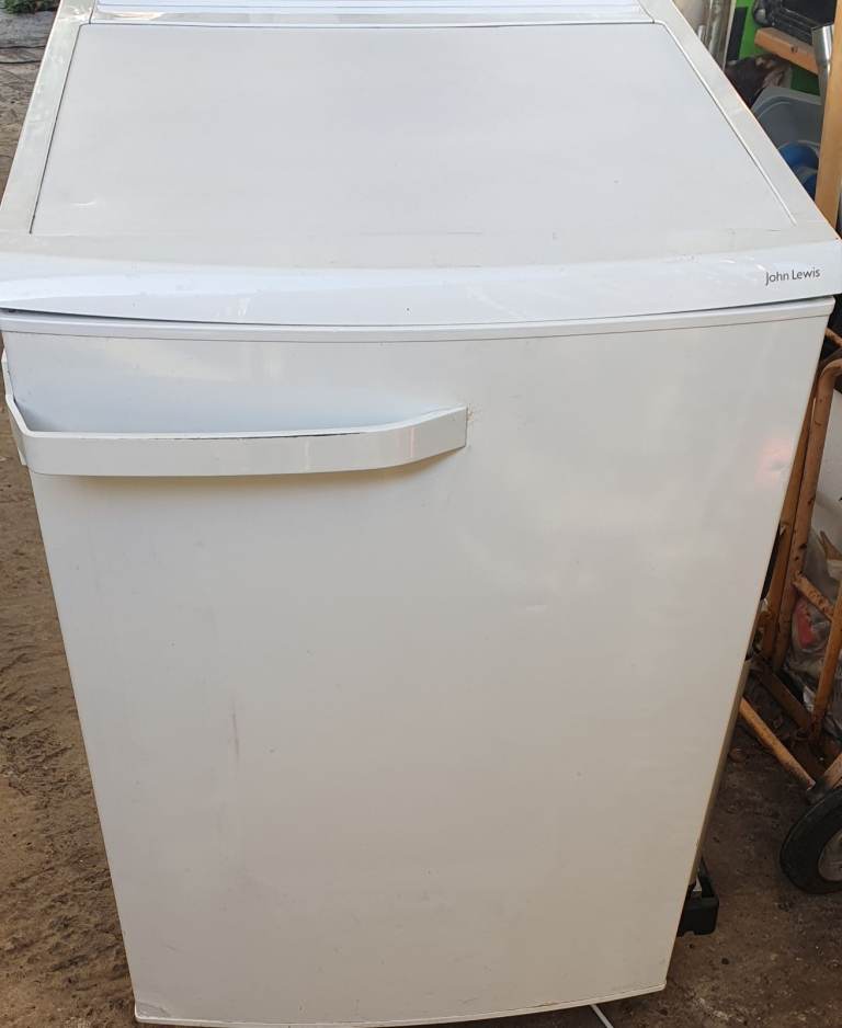 Free-standing under counter fridge suitable for garage as additional cold storage.