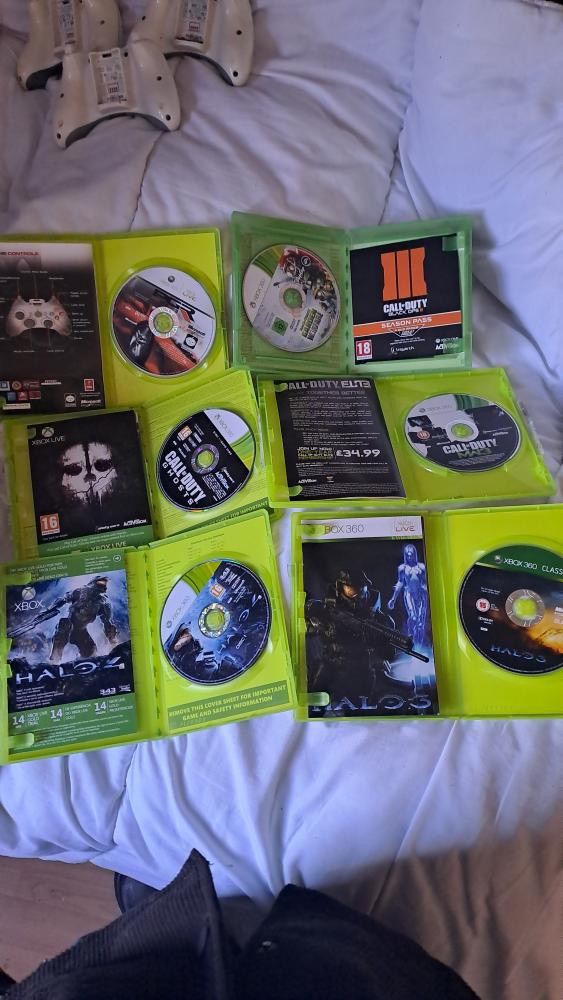 2 xbox 360s, 3 controllers, 8 games, 1 xbox fully working, have power cable. just need battery packs and power cable for the other xbox. 📍ballymena. taking £££ or swap (£100+) CASH&CARD preferably CASH all things included in the pictures PRICE CAN GO DOWN No lower than £100