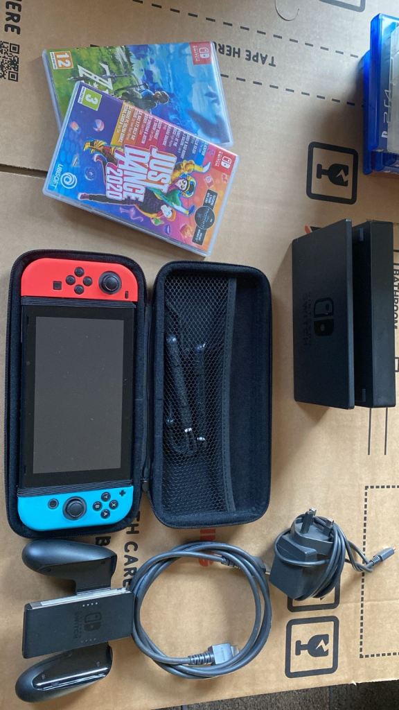 Comes with box an console no charger but charges with usbc