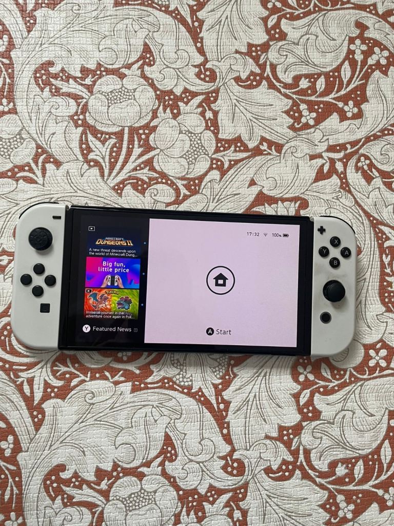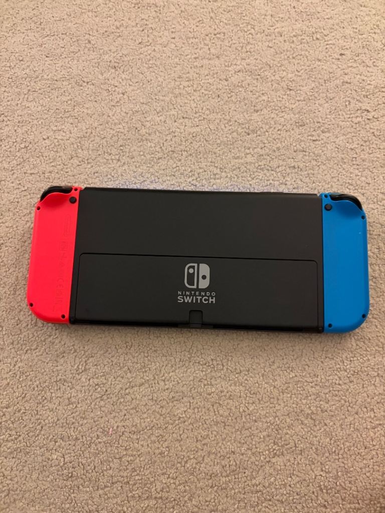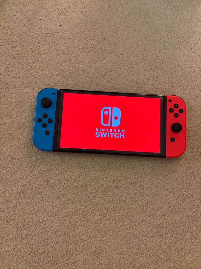 Nintendo OLED Switch for sale. Extra set of joy cons to be able to play 4 player. Comfort grip, charging grip, protective case and dock included along with Mario Kart Deluxe 8. Spare screen protector also. Has had a screen protector on since day one. Well looked after. Collection only.