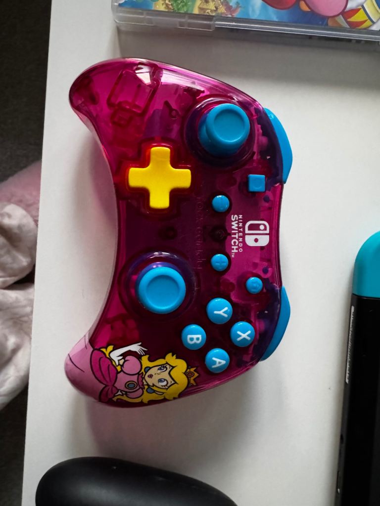 Nintendo switch! In good condition with two controllers - black one is wireless and pink controller is wired