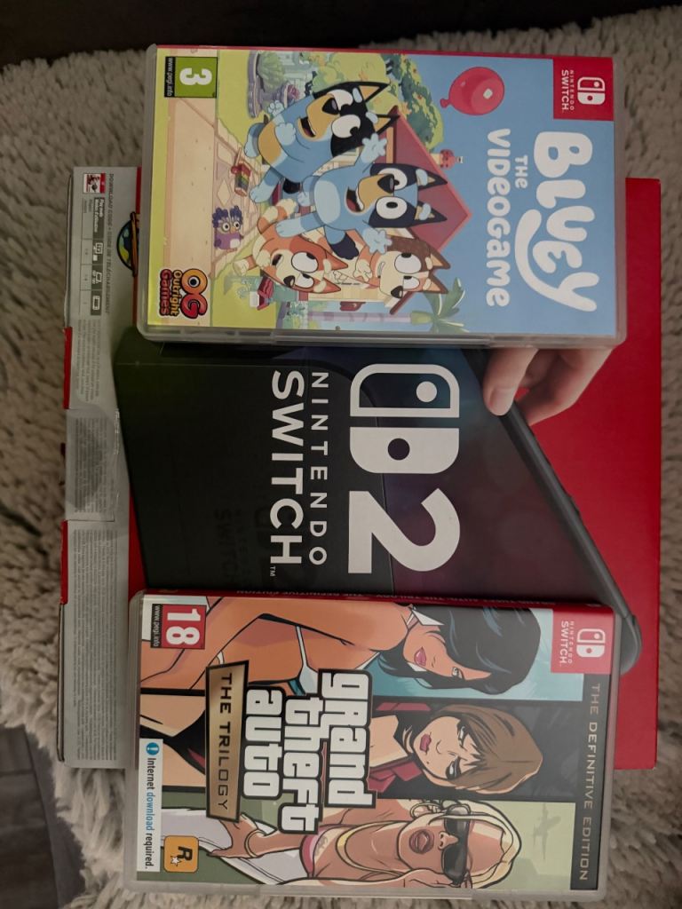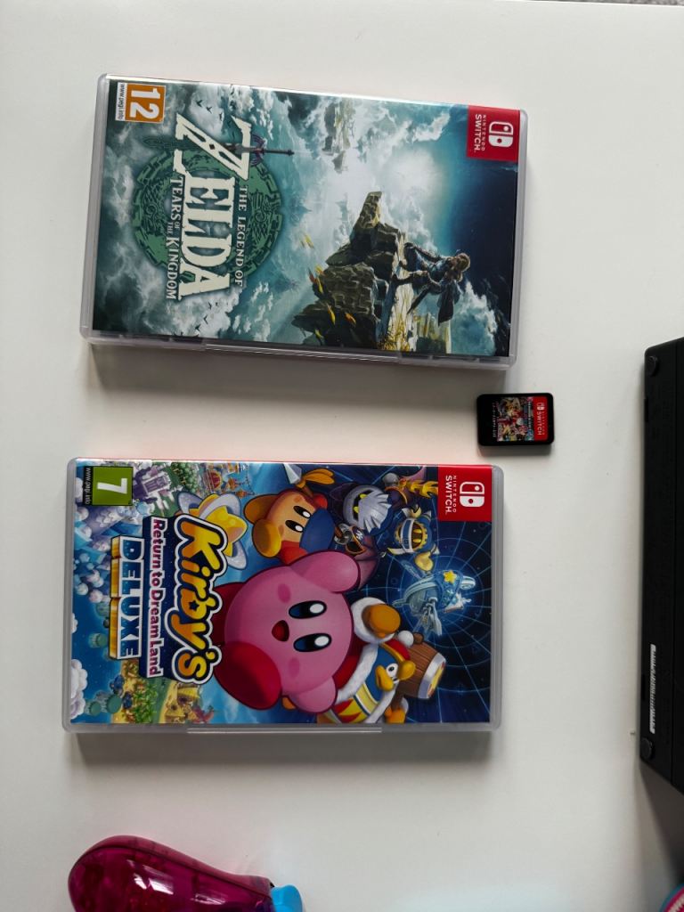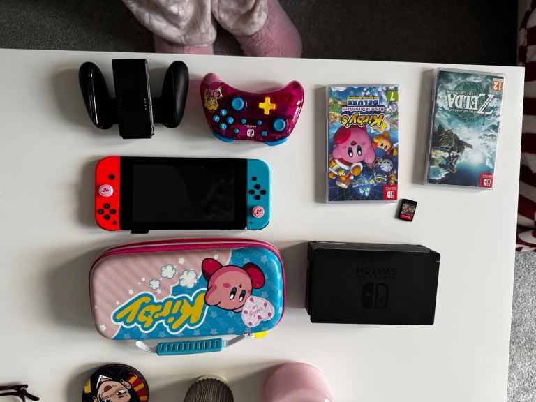 Posting for 3+ yearsNintendo Switch Bundle – Zelda TOTK, Mario Kart Deluxe 8, Kirby Case, Controllers, 128 GB MicroSD