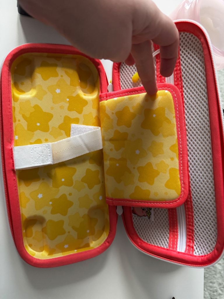 Kirby case is DAMAGED however inside is in good condition but the outside its marked, but the switch itself is like new.