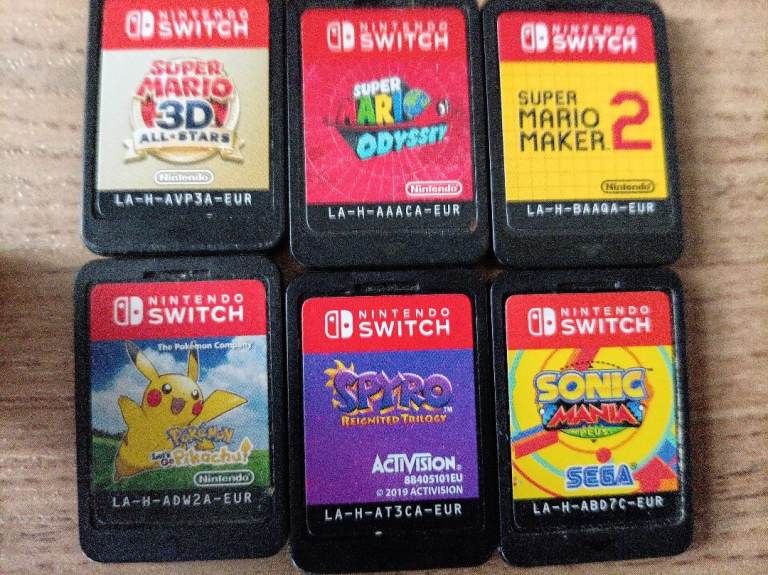 Nintendo Switch console with Dock and charger, comes with a Mario carry Case a few accessories and 6 games . The small plastic stand is missing from the back and it has a small scratch on the screen which doesn't affect touch or game play in any way. Games are in the photos. It's just gathering dust £90 quid the lot open to serious offers.