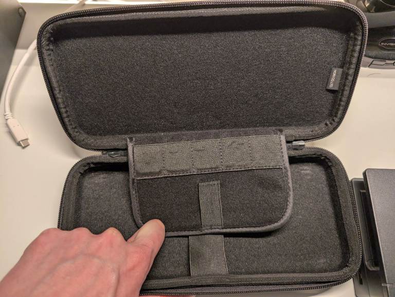 large carry case for console when using hori pad (padded pouch + space for 10 game cartridges)